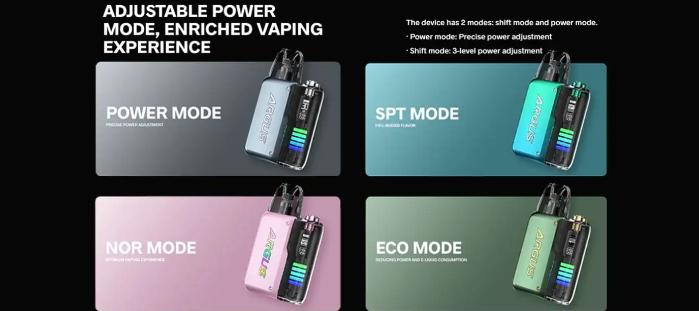 - Power Mode: fine-tune your vaping for a more personalised experience.