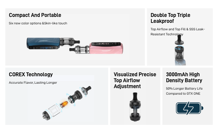 ✔ تحكم علوي في تدفق الهواء - لدعم أنماط التدخين MTL وRDL وDL