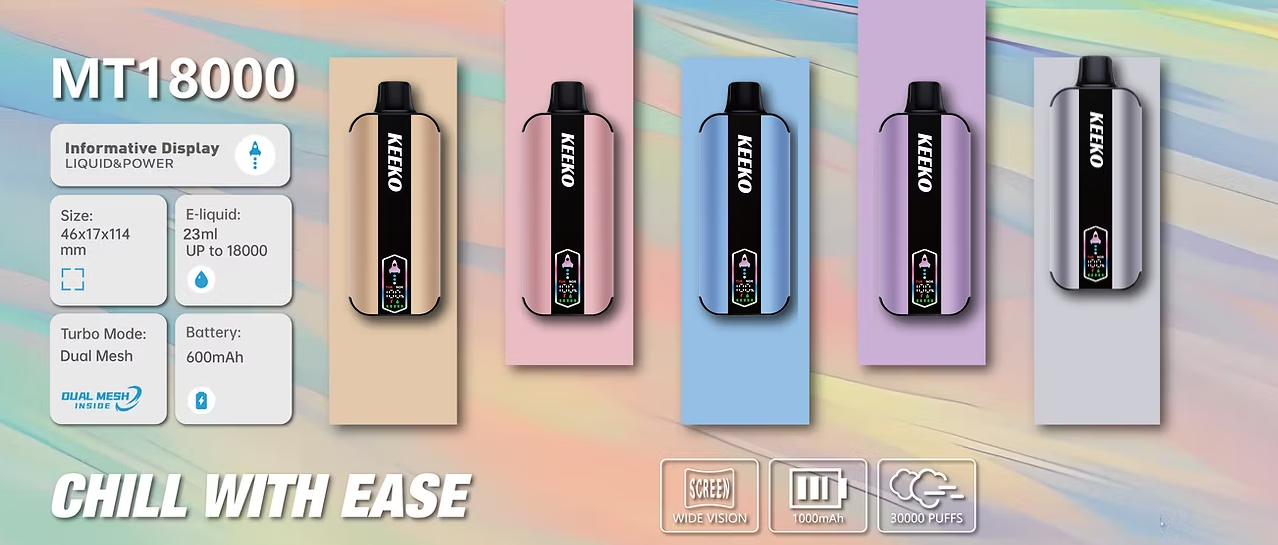 يوفر KEEKO MT18000 تجربة تدخين سلسة مع سحب غني بالنكهة ودخان كثيف مرضي. تم تصميم الجهاز ليناسب جميع أنواع المستخدمين، من المبتدئين إلى المحترفين.